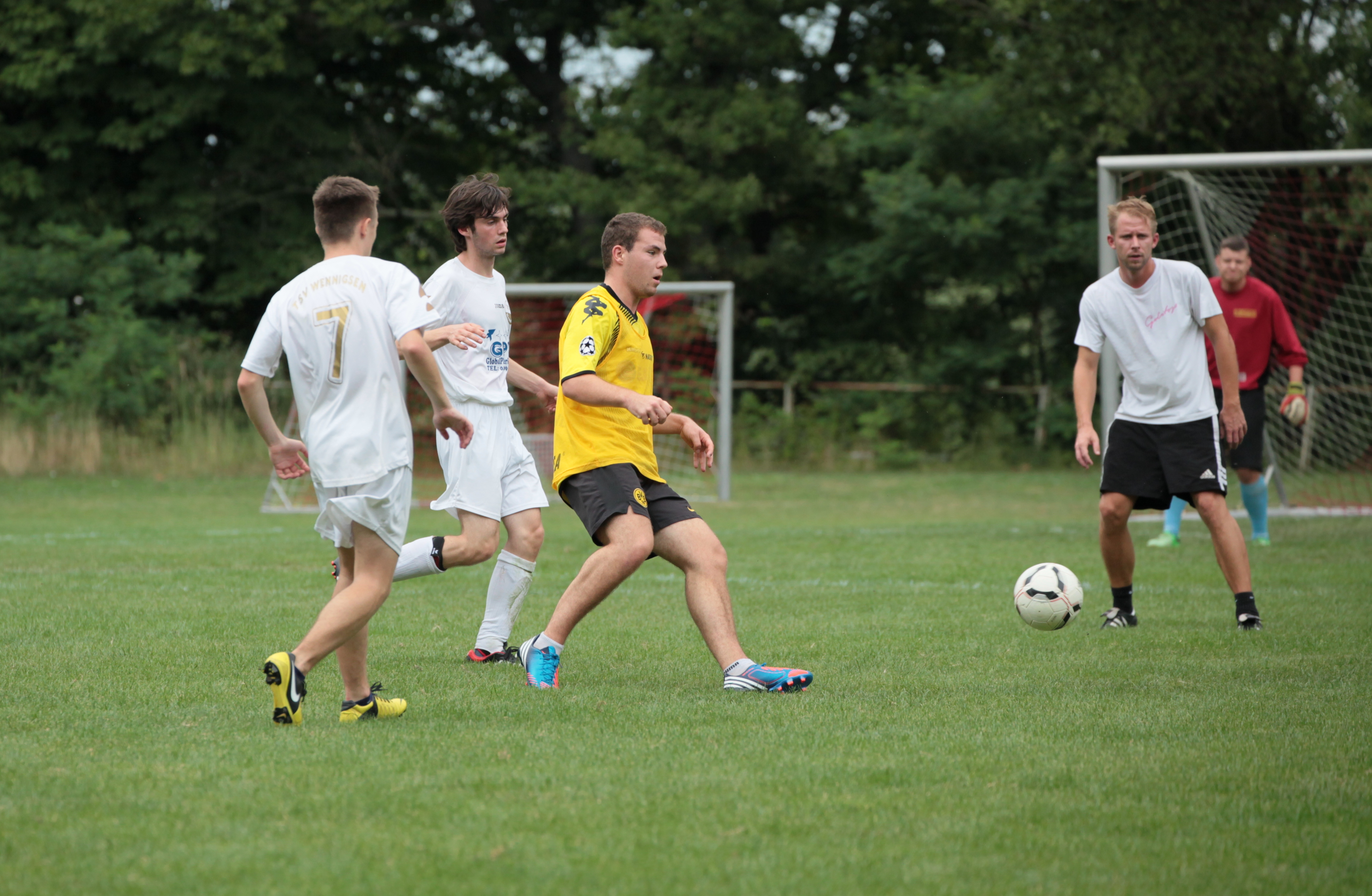 Zum Saisonbeginn trafen sich am vergangenen Wochenende die Erste und Zweite Herren sowie die A-Jugend zum inoffiziellen Saisonauftakt am Waldsportplatz. Auf dem Programm stand neben den obligatorischen Mannschaftsfotos noch ein Spaßturnier der drei Teams. In drei gemischten Mannschaften spielte dabei Jeder gegen Jeden. Wie auch beim anschließenden gemeinsamen Grillen ging es dabei nicht um den sportlichen Erfolg, sondern um ein geselliges Beisammensein und Kennenlernen der zum Teil neu zusammengesetzten Mannschaften. Obwohl die Zweite Herren schon eine Trainingseinheit in den Knochen hatte und die A-Jugend am Vormittag sogar schon ein Punktspiel absolviert hatte, waren alle mit Spaß und Engagement bei der Sache. Auch beim abschließenden gemütlichen Teil des Tages war die Stimmung gut. Umso mehr bleibt zu hoffen, daß die drei Mannschaften auch in der kommenden Saison eng zusammenarbeiten und sich soweit möglich gegenseitig auf und neben dem Platz unterstützen.