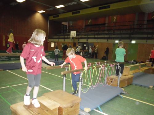 Die Turnsparte lud heute zum Familien-Turnfest für Jung und Alt in die Sporthalle der Sophie Scholl Gesamtschule ein. Dabei wurde auch die neue Air-Trackbahn vorgestellt und für Übungen freigegeben. Neben einem Geräte-Parcours, waren auch die Trampoline und die Kletterwand in Betrieb und die Zumba Vorführung lockte zahlreiche Interessenten. Viele Besucher und Vereinsmitglieder kamen, um sich auszuprobieren oder vorzuführen was man bisher in den Übungsstunden erlernt hatte.